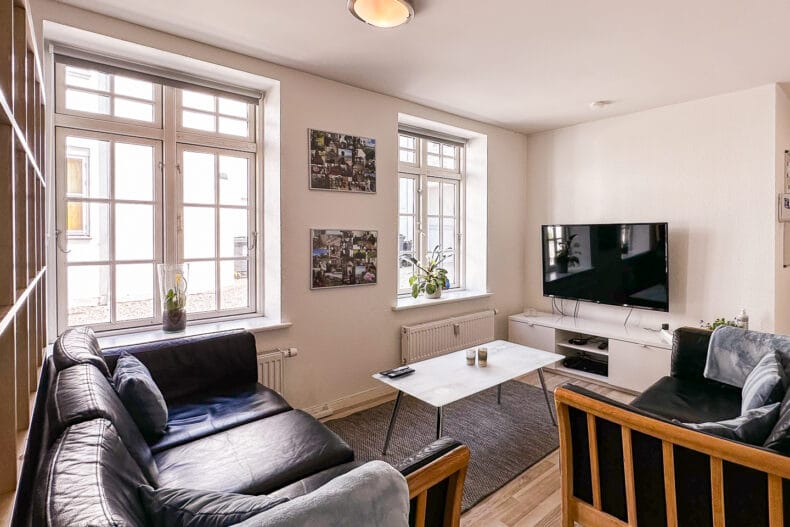 Lejligheden, der ligger centralt i Slagelse, har nem adgang til offentlig transport og den ligger tæt på indkøb og caféer.