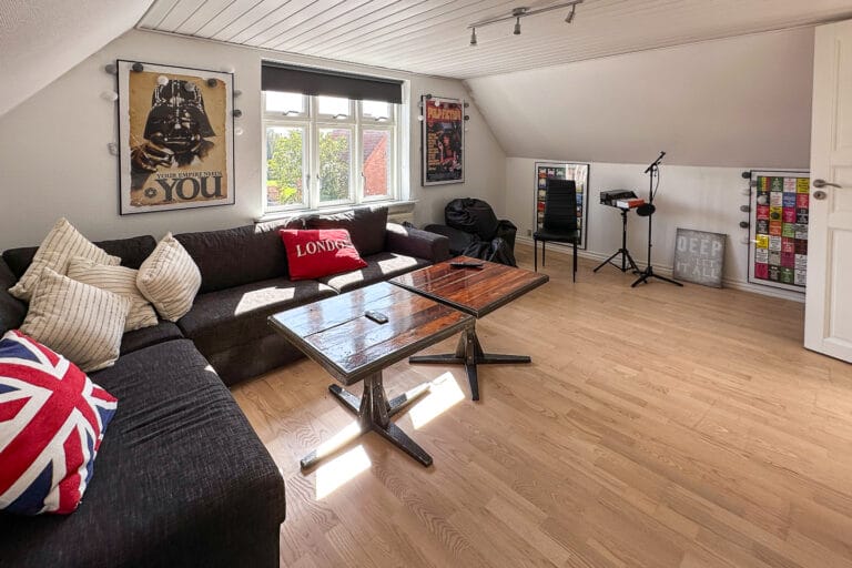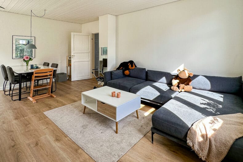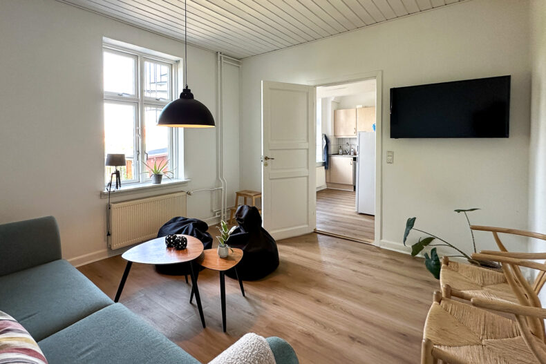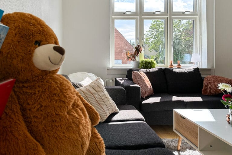 Samværslokalerne på stueetagen og 1. sal er særligt egnede til støttet og overvåget samvær – her er legetøj, spil, sofagruppe, fjernsyn og spisebord.