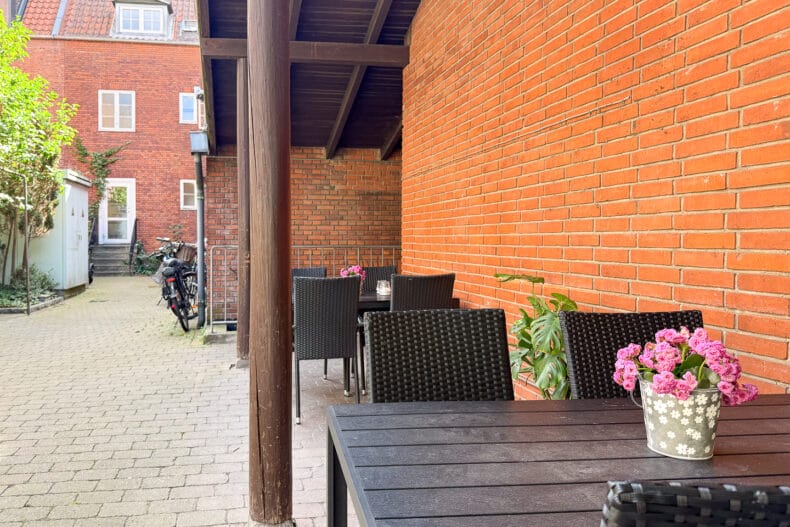 Afdelingen er centreret om vores åbne køkken og stue, hvor der er gode muligheder for at deltage i fællesskabet. Derudover er der adgang til en hyggelig atriumgård med borde og bænke.